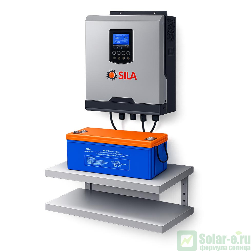 Онлайн ИБП для дома и офиса SILA K 6200MOHT ( 15,3 кВт*ч ) состоит из онлайн инвертора/зарядного устройства K 62000MOHT мощностью 6,2 кВт ( кратковременно 12,4 кВт ) и LiFePO4 аккумулятора SILA LP16-48300 емкостью 15,3 кВт*ч.